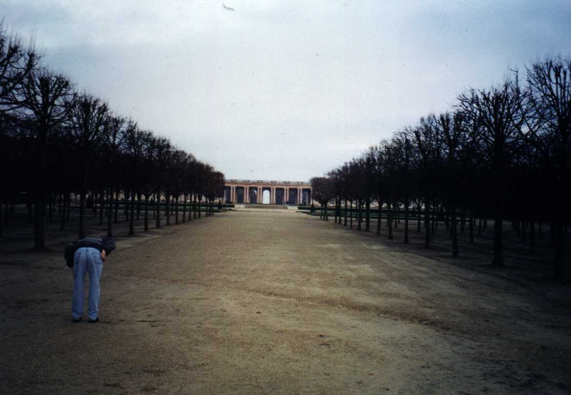 in front of some big ass building in Versailles, France (the place Louis XIV built because he didn't think the Louvre was big enough)